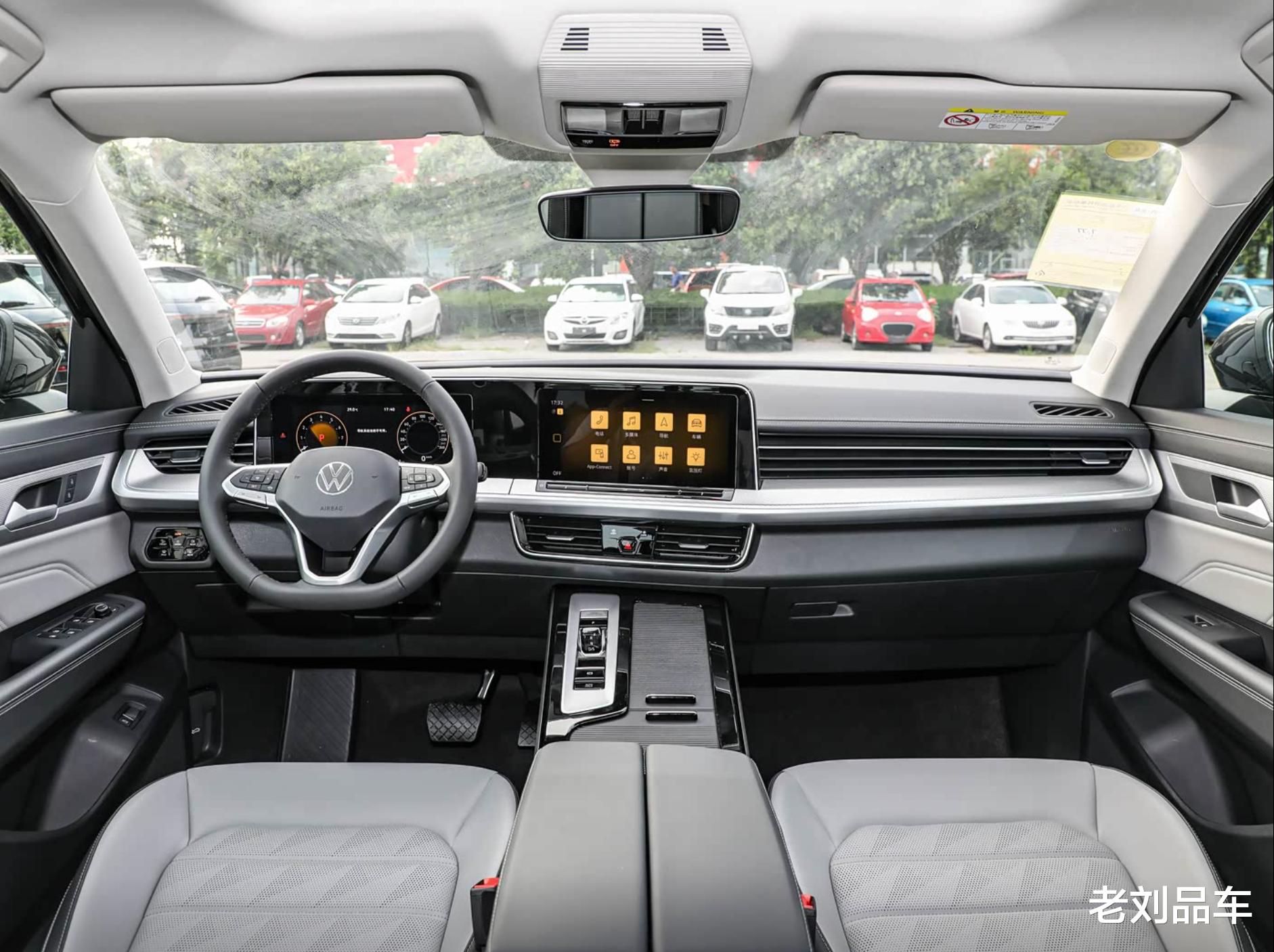 坐进车内,整个内饰依然是大众朴素、简约的风格,T型中控台布局清晰合理,棱角分明。软包基本分布在门板内侧和中控台上方,中控台装饰运用了大量的金属或者塑料饰板,方向盘全系都是真皮包裹。R-Line系列增加了换挡拨片,能选择方向盘加热。驾驶员前面是一块儿12.5英寸的全液晶仪表盘,大众数字化仪表一向做得不错,信息全面不杂乱。中控屏为12英寸,位置和角度都比较顺手。