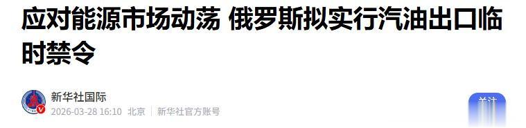 就在能源市场最动荡的时候,俄罗斯宣布准备实施汽油出口禁令。
