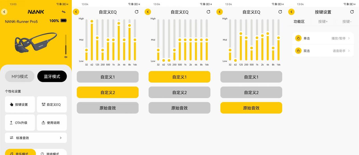 如果搭配南卡APP还可以寻找自己感觉最舒服的音效和风格。通过手机端南卡APP应用,调整EQ,根据自己的聆听风格实现私人订制。同时也可以对按键功能根据自己的使用习惯进行调整设置。