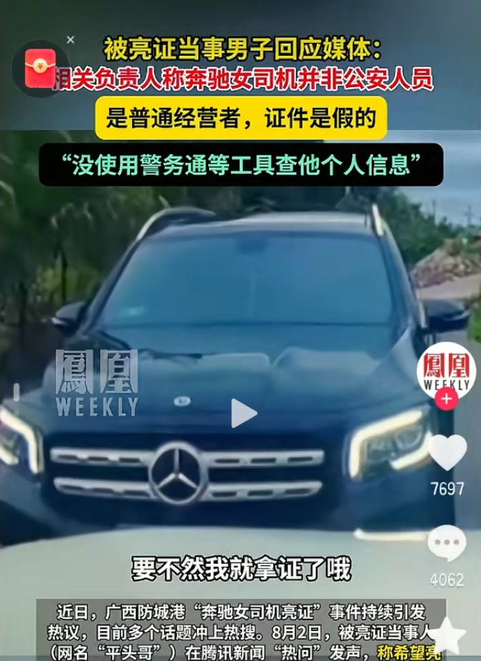 开奔驰的大姐上来就是一套丝滑小连招,先是拒不过路,然后掏出行政执法证往你脸上一亮,最后副驾上的男人更是张嘴就能爆出你的全部信息。