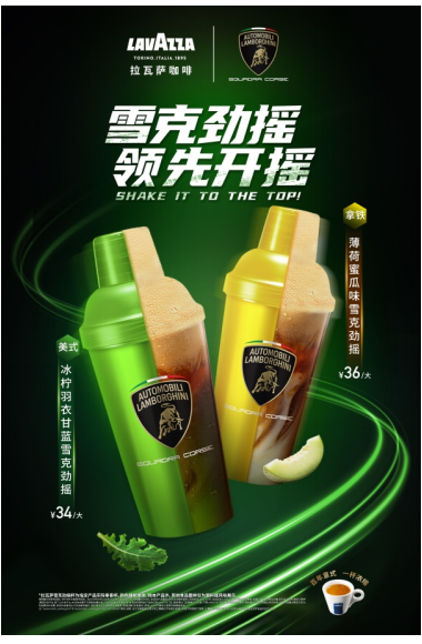 Lavazza与兰博基尼汽车联名推出的雪克劲摇系列,也是此次合作的重头戏。该系列包含四款创新饮品:6月12日冰柠羽衣甘蓝雪克劲摇与薄荷蜜瓜味雪克劲摇领先开摇,前者以拉瓦萨咖啡豆为基底,融合羽衣甘蓝苹果复合果汁与香水柠檬汁,带来清新活力的夏日体验;后者则将牛奶与薄荷蜜瓜风味糖浆巧妙结合,搭配薄荷叶的清凉,营造出层次丰富的味觉享受。