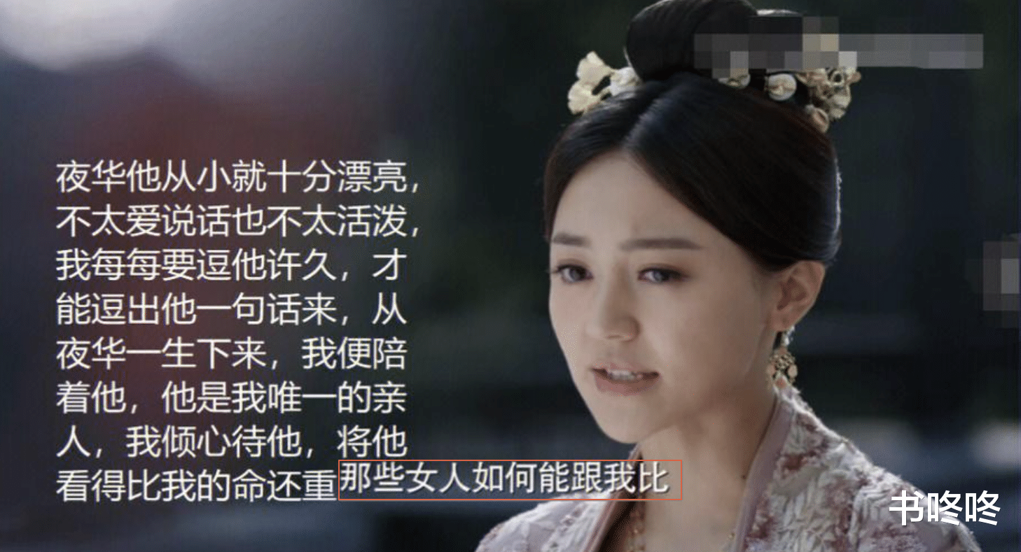 她的偏执与疯狂,并非天性如此,而是在极度压抑和剥夺下的绝望反弹。她一无所有,唯有夜华是她童年唯一的光和情感寄托。