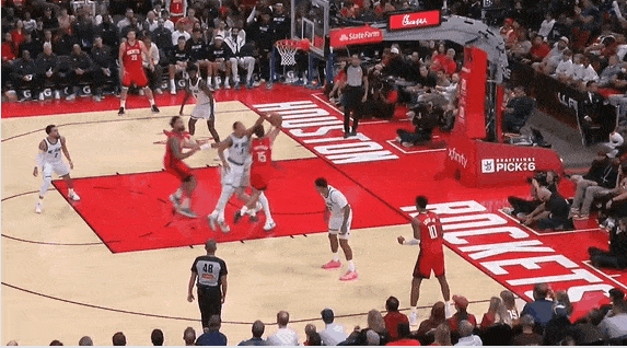 比赛第四节,谢泼德被贝恩大帽后伸脚绊倒贝恩,裁判吹罚其一级恶意犯规。