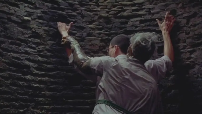 满身是血的阿奇拿着刀,他颤抖的手显示了内心的极度挣扎。一边是童年遭受父亲虐待的记忆,一边是父亲给与他的关心与爱护。