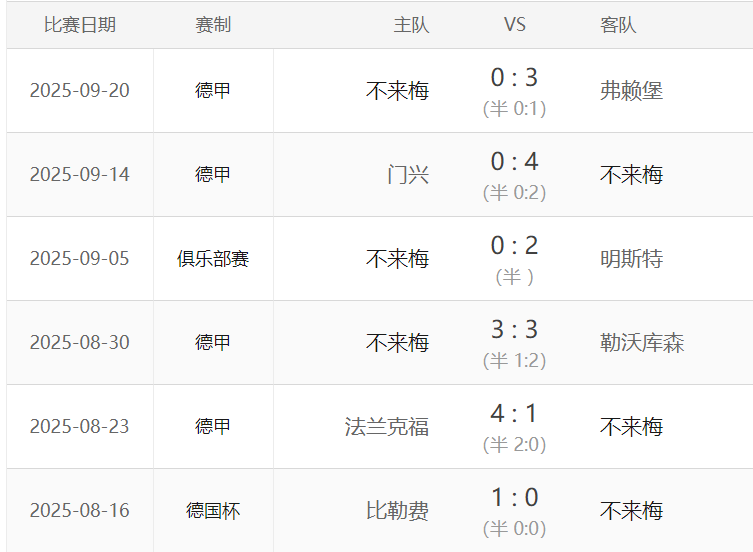 这支不来梅德甲开赛以来打的最“漂亮”一战是4:0战胜门兴,结果用力过猛下一场就虚了,主场0:3被打回原形。还有一场经典的剧本,当时主场两红牌9打11,1:3落后的情况下3:3绝平勒沃库森,直接把对面勒沃库森主教练滕哈赫赛后给弄下课了,轰动一时。妥妥的神经刀本色!!后防豆腐渣工程