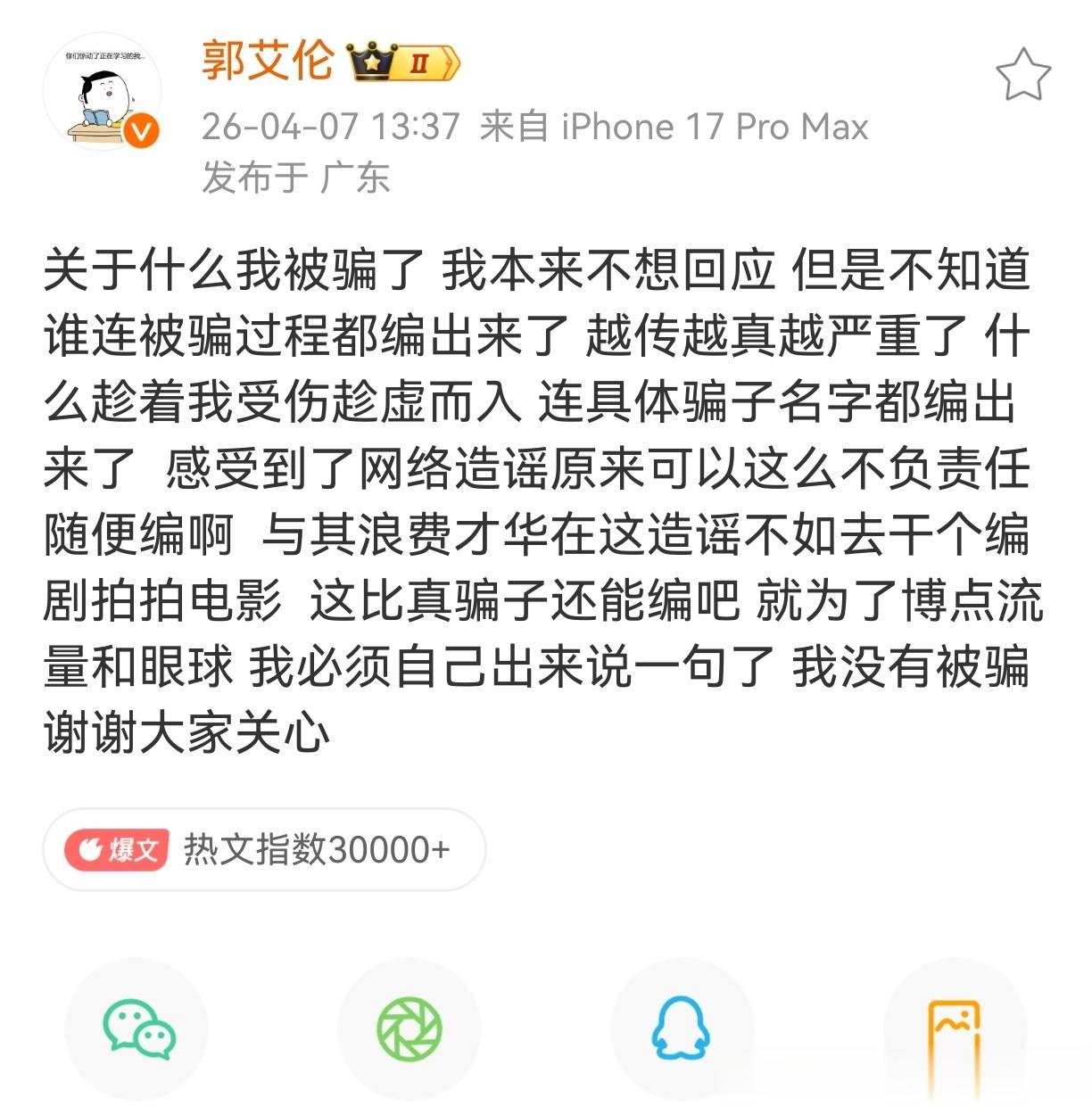 这件事也发酵了好几天了,而且热度居高不下,终于正在养伤的艾伦忍不住了,昨天他不仅发文辟谣,而且开直播说明并没有被骗,是有些人故意造谣吸引你关注博流量的。