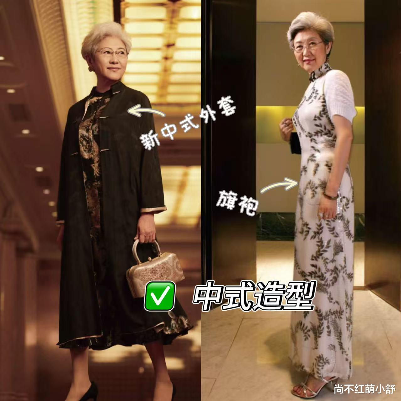 无论是傅莹的旗袍还是华春莹的西裝,最显著的特点就是“极其合身”。所以上了年纪的女性选择单品时,切记好的面料和剪裁能修饰体型,塑造出挺拔利落的姿态,让你穿出好气质。