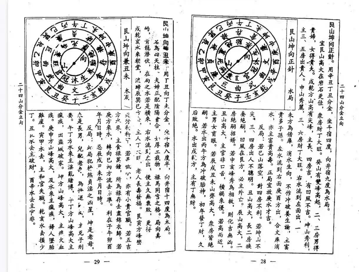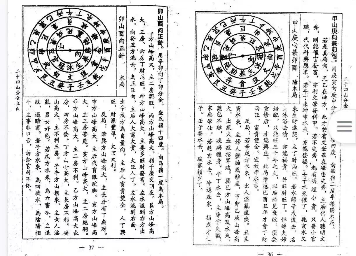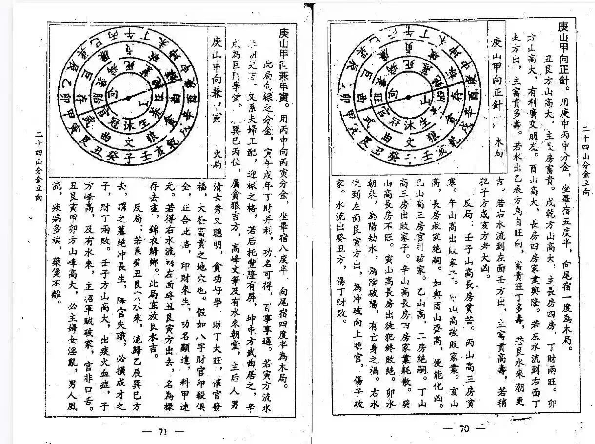 从文化传承与现实意义来看,《二十四山分金立向》是杨公风水的核心载体:它延续了 “天人合一、趋吉避凶” 的古老智慧,将方位、五行、理气与现实环境深度融合,既展现了杨公风水 “精准立向定祸福” 的核心特质,又为研究传统风水的实操体系提供了不可替代的文本样本。在当代,无论是阴宅墓地选址、阳宅家居布局,还是商业场所规划,分金立向作为风水布局的核心环节,直接影响气场调和与运势走向,这部典籍的实用价值依然不减。