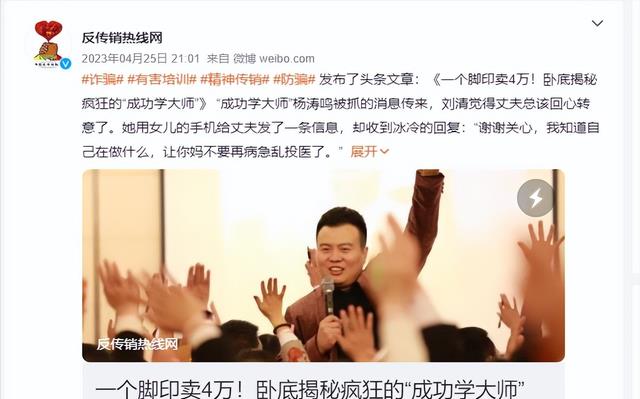 这篇文章中详细揭露了杨涛鸣团队的种种骗局,包括天价售卖普通物品、利用 “托儿” 制造虚假氛围、实施精神操控等。
