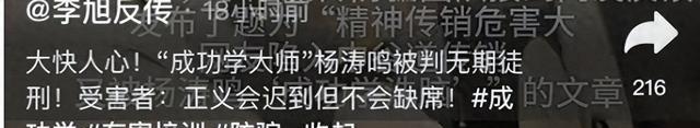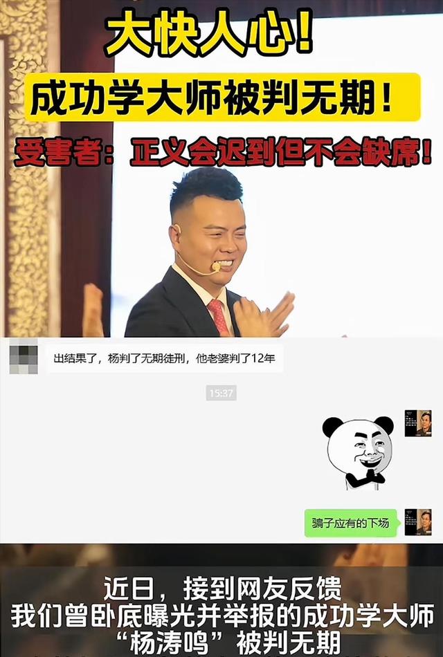 4月23号,一则重磅消息在网络上炸开了锅:曾经在成功学领域呼风唤雨的 “大师” 杨涛鸣,被法院判处无期徒刑,他的妻子也未能幸免,获刑12年。