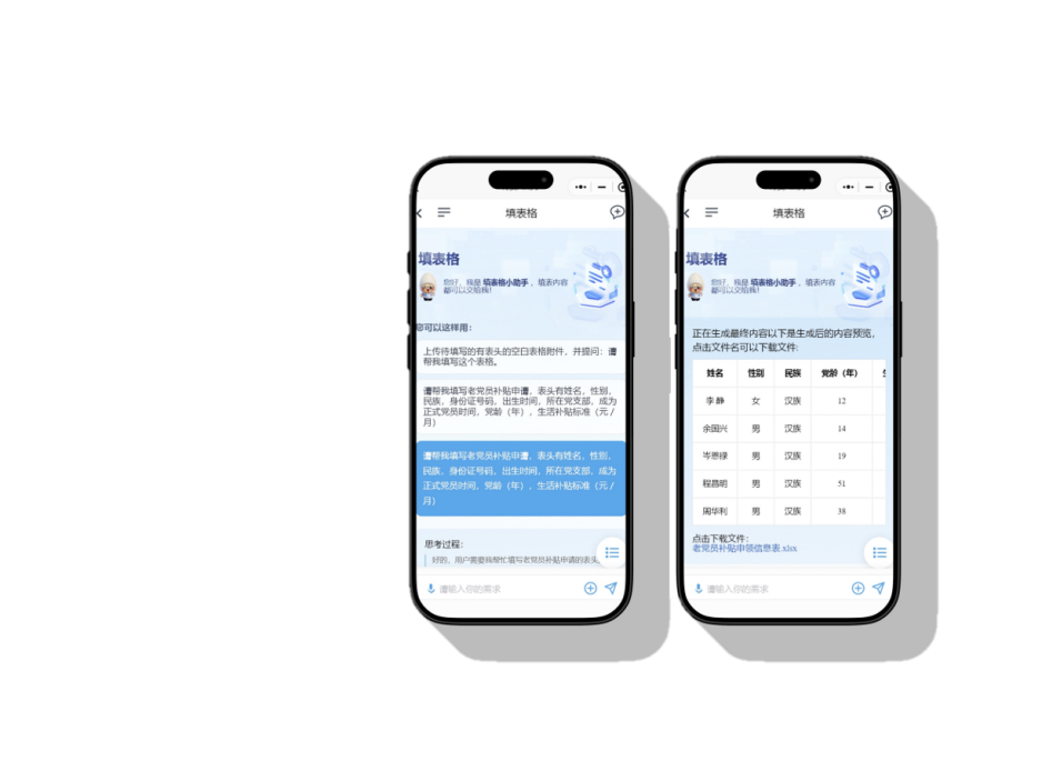 村里办公不麻烦,方言也能听得懂。基层人员困于材料、报表等相对繁琐的工作,尤其是年终总结、政策汇报、专项申请,既讲究格式严谨又需要数据支撑。“AI村委助手”专为村级政务场景定制,接入本村数据后,便能自动生成符合公文规范的文书材料,让“材料写的出、格式对的上、数据压的准”。填写表格时,它不仅能识别表头、提取字段、调用数据,还支持语音输入或上传空表,系统即可智能匹配内容,大幅减少重复劳动。