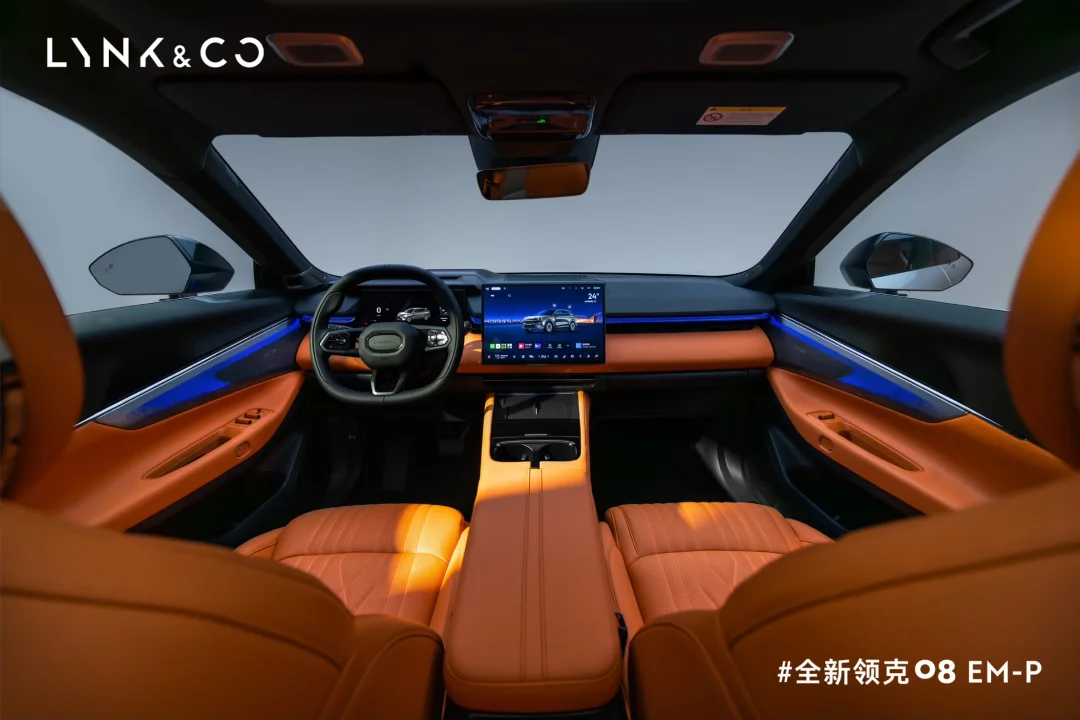 内饰方面,全新领克08 EM-P围绕“精致豪华”打造,色彩、材质与工艺都很贴合家庭场景。曙光橙、日光米两种内饰配色,摒弃了传统车型的沉闷——曙光橙源自黎明曙光的温暖橙调,日光米清新明亮,都能传递出温馨氛围。材质上,抗污Nappa皮采用Ansole抗污技术配方,抗污性能可与真皮座椅同生命周期,孩子在车内留下污渍也容易清洁,长期使用仍能保持良好状态;细节处的顶级绗缝工艺堪比奢品级刺绣,不仅提升了内饰艺术美感,也让触摸感更细腻。此外,256色流光环绕氛围灯可随场景切换,避免单一色调的沉闷,让车内氛围更契合家庭出行心境。