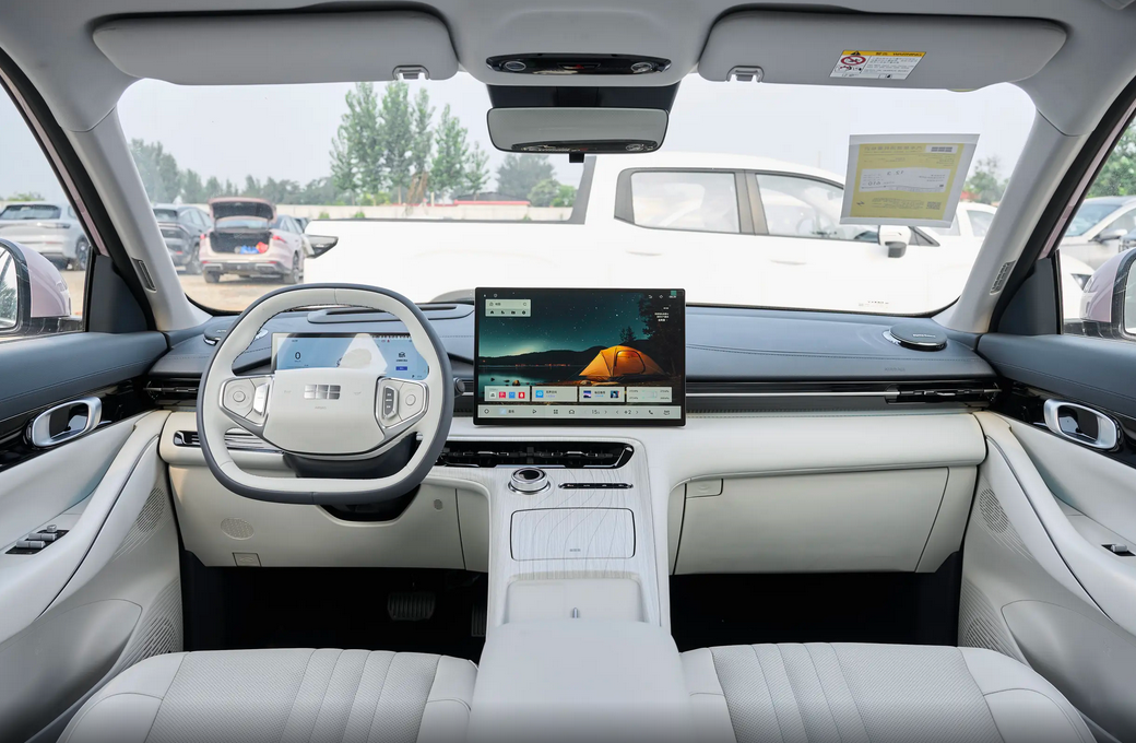 进入26款吉利银河E5的座舱,环抱式中控台有薄暮蓝和云初白两种配色风格,一个深色调一个浅色调,可根据自己的喜好来选。该款车的中控台功能分区明了,15.4英寸大屏为全系标配,大尺寸的屏幕放在这款紧凑型SUV上,有着很强的视觉冲击力。中控屏画质细腻,UI界面清爽干净,常规的功能均没有缺席,而且高德地图显示效果与手机App相同,前方路况摄像头等能清晰播报。到了陌生城市也能快速解锁一座城,不需要额外支手机支架,破坏座舱的简约性。对了,该款车虽然也支持部分娱乐功能,然而64GB的存储还是要悠着点儿,时间长了难免会卡顿,所以尽可能还是玩儿手机吧。