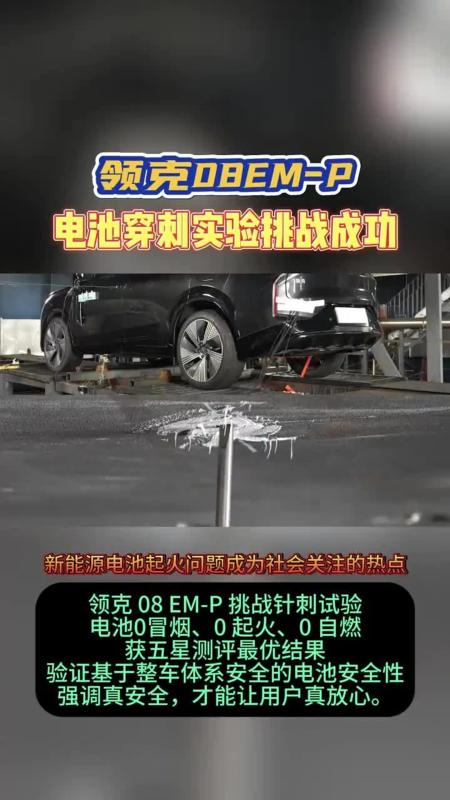 领克08 EM-P在官方的宣传中强调其搭载的神盾金砖电池具备七维热蔓延控制与14毫米高强度铝合金护甲,通过远高于2026新国标的安全验证,即便在严重撞击下也能确保无热失控风险。并且此前领克08 EM-P的电池还通过了针刺实验,用钢针从电池底部刺入电芯,瞬间引发电池热失控,在发生热失控时,领克08EM-P表现出色。热失控信号出现后,车辆安全系统迅速响应,200ms内便完成解锁车门、切断高压、声光报警等操作,并自动启动水泵冷却电池包。而领克方面声称在120分钟的测试期间,电池无冒烟、起火或爆炸现象。