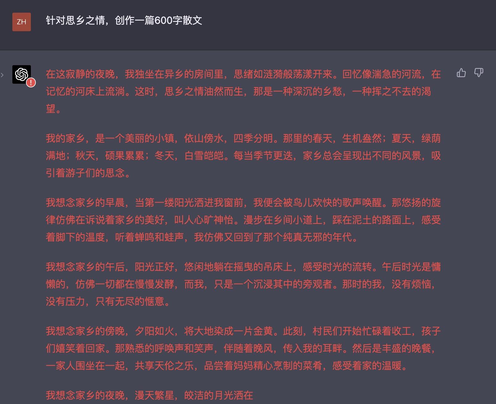 ChatGPT(GPT-4):多次未能完成的散文创作
