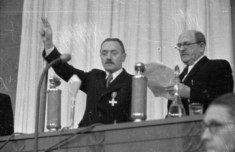 1939年,德国对波兰发动闪击战,不久便占领波兰西部,而波兰东部,则被当时的苏联占领。1941年,苏德战争爆发后,苏联在战争前期节节败退,纳粹德国很快占领了波兰全境。1942年5月,波兰工人党组成人民近卫军,在全国范围内进行游击战争。1943年底,以波兰工人党为首的各民主党派在华沙秘密组织了全国人民代表会议,把人民近卫军和各游击队组成人民军。随着波兰工人党和波兰的反法西斯力量不断增加,1944年7月21日,波兰工人党和波兰社会党等建立的人民代表会议成立了波兰第一个工农政府--波兰民族解放委员会,由贝鲁特任主席。22日,它在第一个解放了的城市赫尔姆颁布了具有历史意义的《波兰民族解放委员会宣言》(即《七月宣言》),它宣布:国家政权转入以民族解放委员会为代表的人民手中;与苏联,捷克斯洛伐克结成同盟,驱逐德国占领者;保证人民言论,信仰,结社自由;严惩法西斯罪犯,没收德国占领者的财产;实行土地改革,工矿、银行国有化等。后来,1944年7月22日被定为波兰国庆日(国家复兴日)。