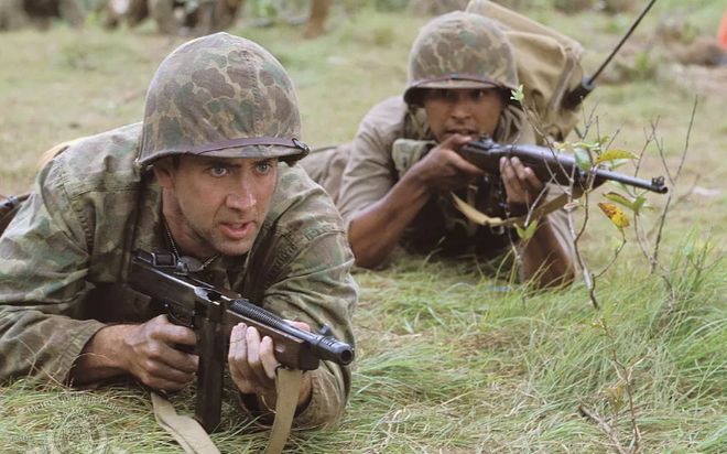 影片以第二次世界大战为背景,聚焦美国军队中使用纳瓦霍密码语言进行秘密通信的真实历史事件,真实历史的嵌入,强化了影片对战争智慧与语言文化价值的思考。在战争的远景与近景转化间,全片充斥着吴宇森导演的暴力美学,而凯奇叔当年的演技,好得让人想飙泪,战争场面虽然没有大兵瑞恩那样写实,但分量足,白刃战、炮击的战争场面刻画也都很不错。