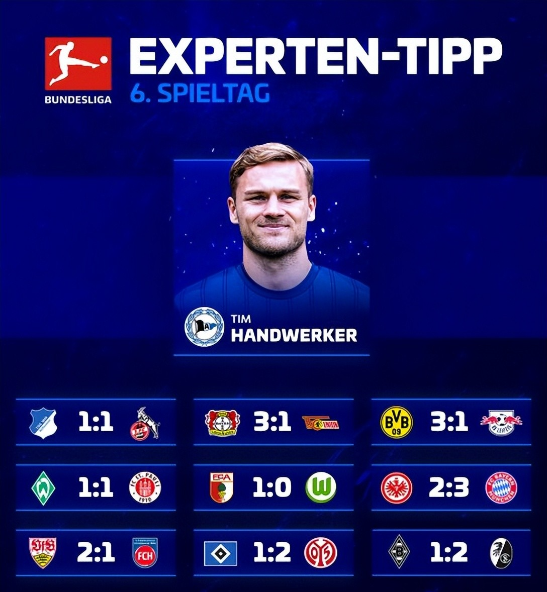25/26赛季,德甲第六轮预测本期,德转所选择的主角是目前效力于比勒菲尔德的27岁的德国后卫汉德韦克、Tim Handwerker。