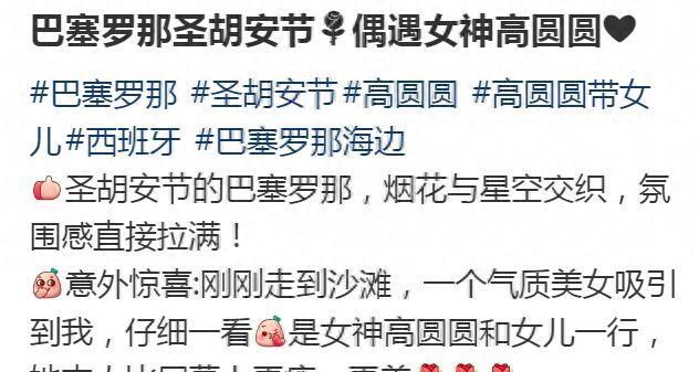 继在西班牙吃麻辣烫被偶遇到后,6月25日,有网友分享出在巴塞罗那圣胡安节偶遇到女神高圆圆并大赞高圆圆本人比荧幕上更瘦更美。据悉,圣胡安节的巴塞罗那,烟花与星空交织,氛围感直接拉满,很适合亲子度假。