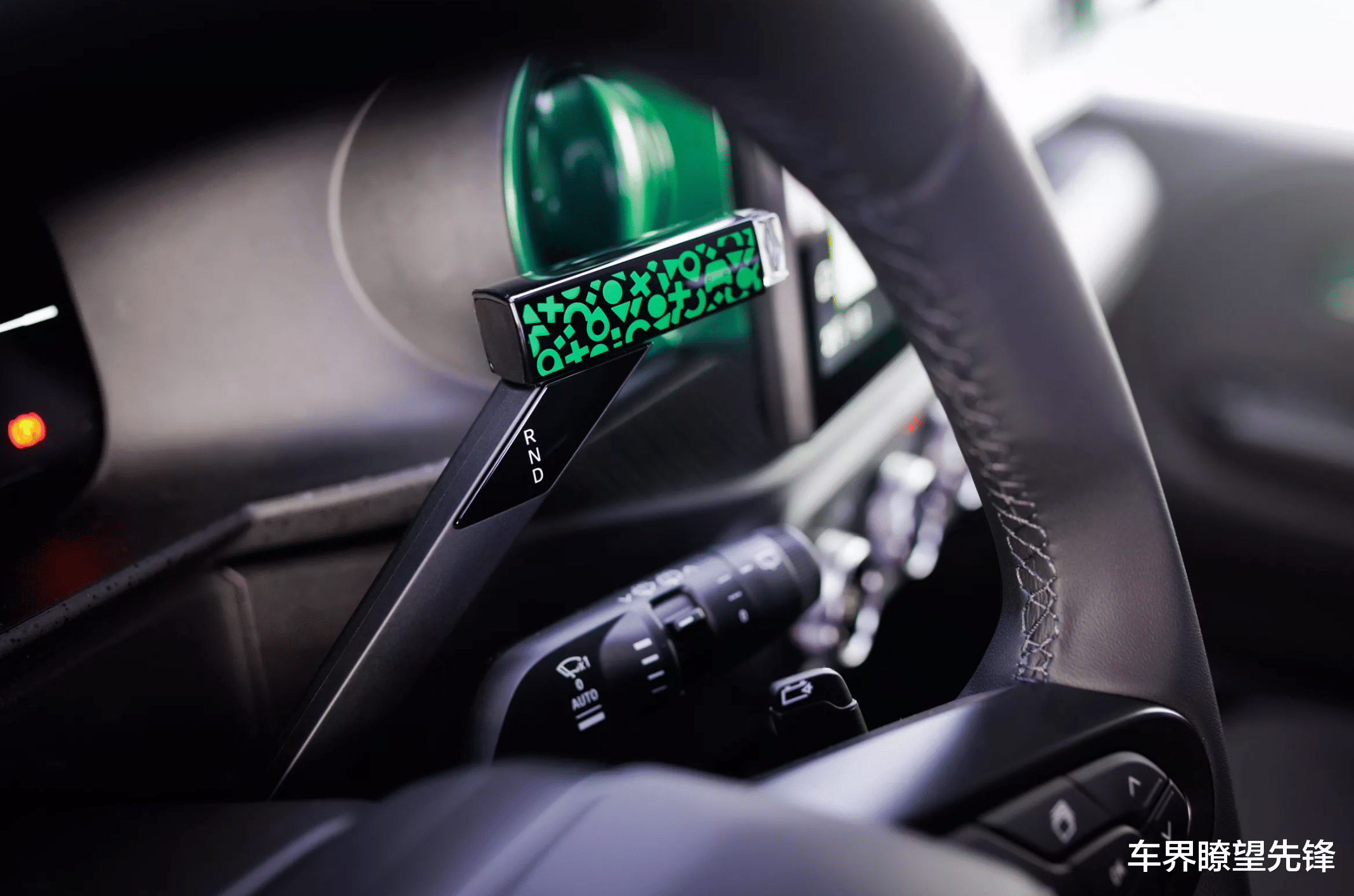 内饰配备了一块7英寸的数字仪表盘和一块10英寸的中控屏,方向盘为传统的三幅式并集合了一些常用的功能按键,采用了怀档的设计,换挡杆是可以定制的“e-pop换挡杆”设计为口红的形状,中控台区域配备了与车漆颜色一致的装饰条,貌似把中控台抬高了一些,说实话看上去有些不实用且不美观,而且有种廉价的感觉。