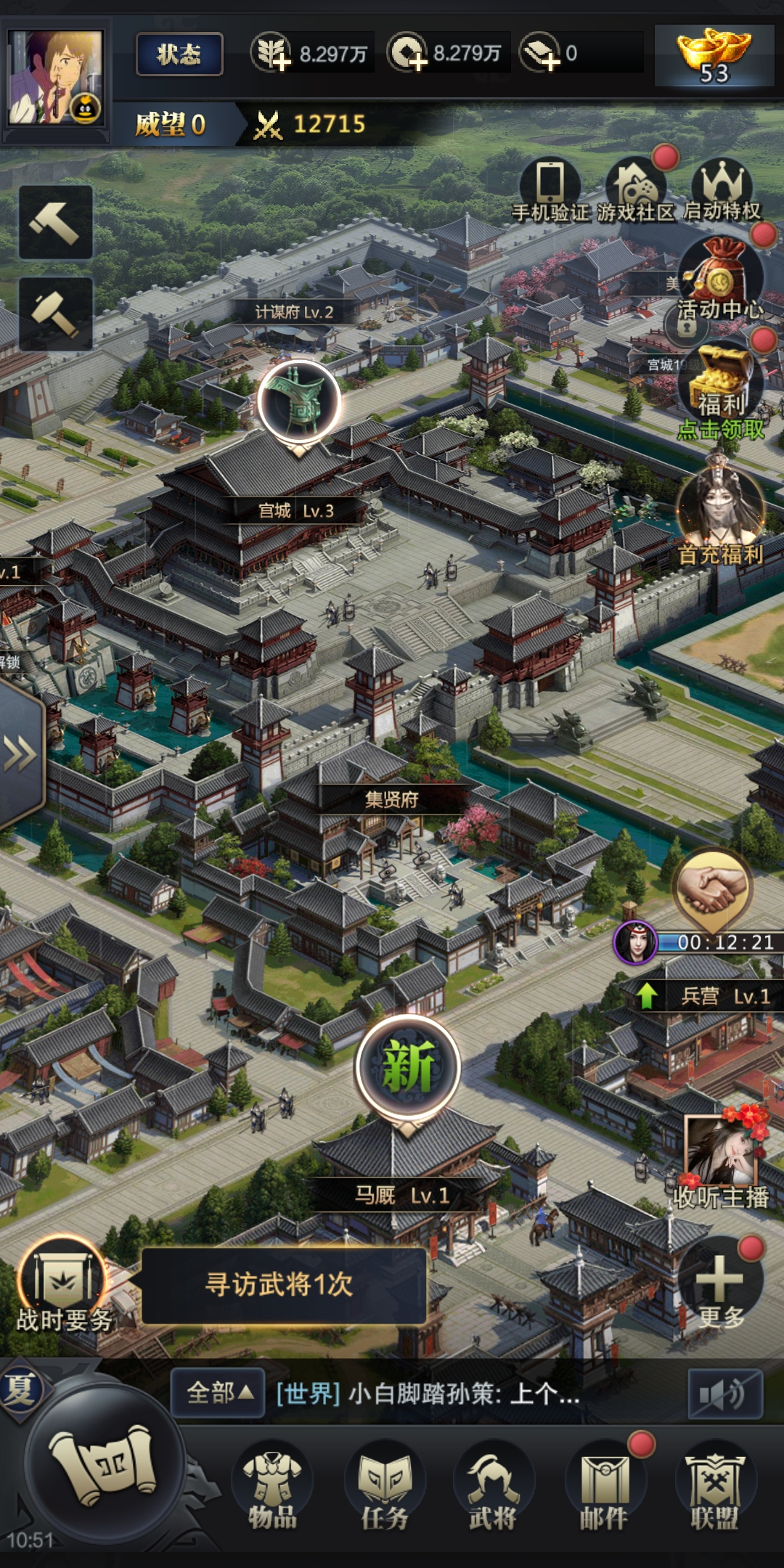 第一名《三国:谋定天下》无疑是其中的佼佼者。它是三国IP泛兴趣向历史策略SLG的代表作,对新手极为友好。游戏以正统三国历史为依托,自动铺路、主城内置资源地等功能,让玩家操作更轻松;集结预约攻城让玩家不用时刻盯着游戏。武将等级置换、战法重置成本低,橙卡概率高且有保底,大大降低了玩家的试错和氪金压力。新手创建角色就送橙色武将徐盛,前七天免费125抽,还能拿到孙策、蔡文姬、貂蝉等武将,轻松组建自己的阵容,开启三国策略之旅。