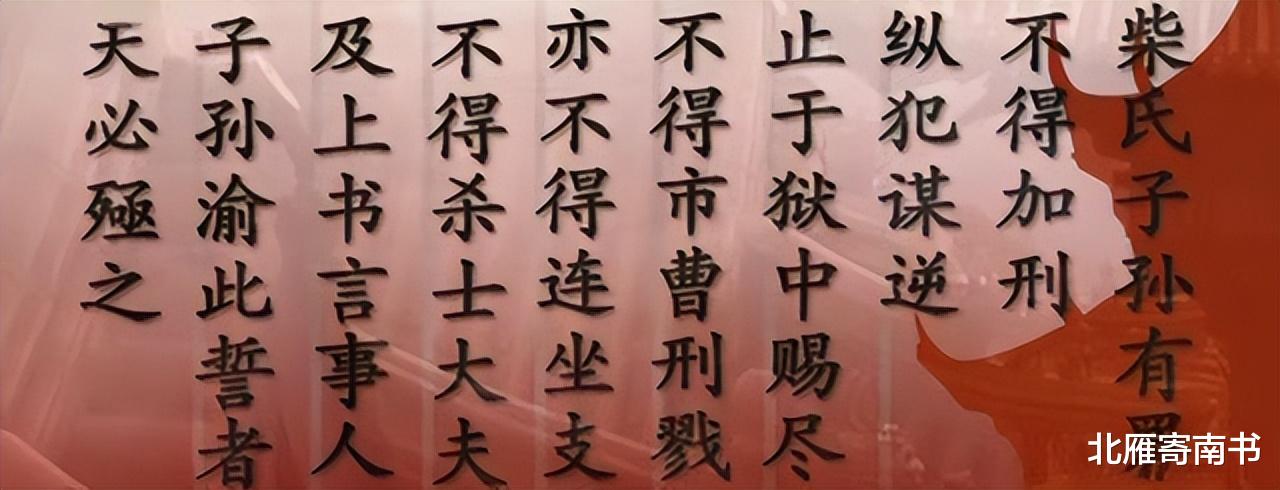 首先,誓约中的第一条,针对柴氏子孙的特赦,显示了宋太祖的宽容与仁慈。柴氏是后周的皇族,而赵匡胤正是通过发动陈桥兵变,推翻了后周,建立了宋朝。尽管如此,他并没有对前朝皇族进行残酷的清算,反而给予了他们特殊的保护,这在当时的封建社会中是极为罕见的。这种宽容不仅体现了宋太祖的个人品质,也为宋朝的稳定打下了良好的基础。