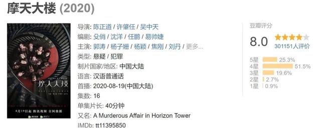 这也难怪,纵观鼻姐这些年出演的电视剧,评分最高的《摩天大楼》,她也只是某个单元里的角色。