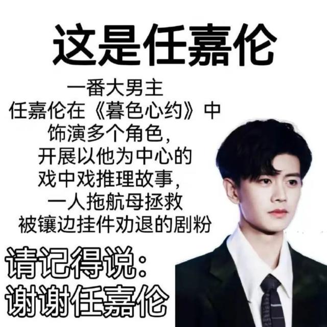 随后国超粉在线作图:这是任嘉伦,一人拖航母拯救被镶边挂件劝退的剧粉,请记得说,谢谢任嘉伦。
