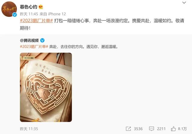 然后《暮色心约》就发了个微博,还没正式官宣的那种。