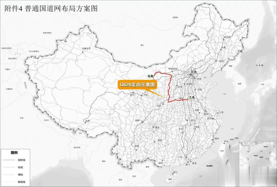 G628兰考—乌海高速公路项目是国家公路网规划新增的普通国道项目,线路全长约1000公里,起点位于河南省兰考县,终点至内蒙古自治区乌海市,横跨河南、陕西、山西、内蒙古四省区,全线构成黄河以北东西向通道。