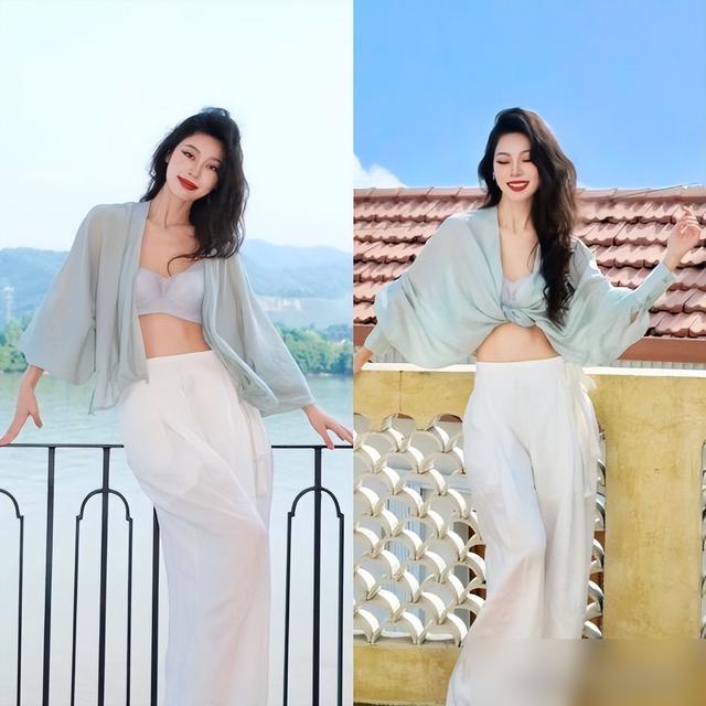第一招:高腰+短上衣,比例直接“逆天”。
