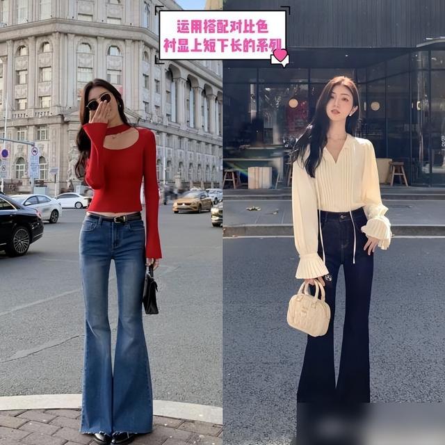 我闺蜜158cm穿高腰牛仔马蹄裤+短针织衫,被同事问“是不是偷偷增高了”,其实就是靠这招。