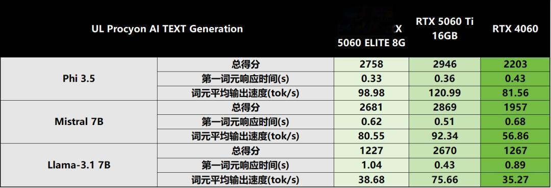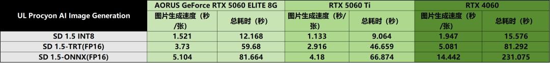 在当下热门的AI应用场景中,技嘉AORUS GeForce RTX 5060 ELITE 8G的表现呈现优势突出、定位清晰的特点。在AI文本生成任务中,其运算效率远超RTX 4060,能够显著节省内容生成耗时,为文案创作、代码编写等场景提供高效AI辅助。不过受限于8GB显存规格,其在AI图像生成领域与16GB显存的RTX 5060 Ti存在明显差距,但相较于同显存级别的RTX 4060,仍展现出更优的生成效率与性能表现,足以满足多数普通用户及入门级创作者的AI应用需求。