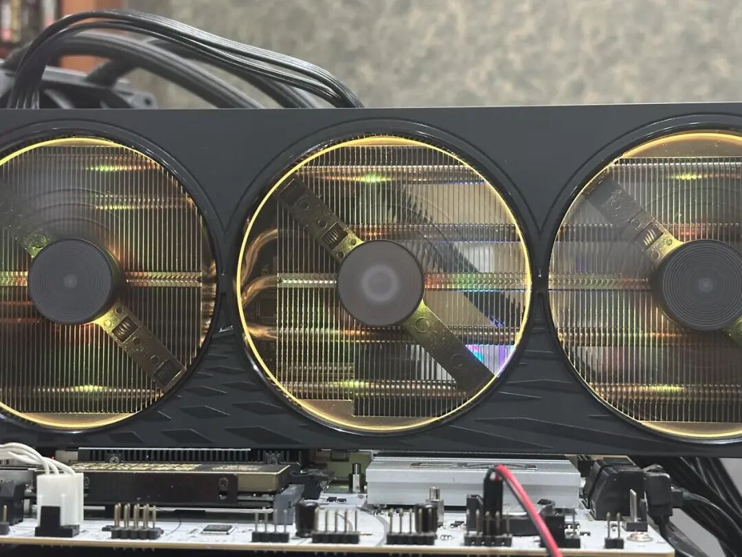 接通电源后,技嘉AORUS GeForce RTX 5060 ELITE 8G正面的RGB炫彩光轮三环灯与上侧的幻彩Logo灯效交相辉映,绽放出饱满绚丽的流光溢彩,光线流转间层次分明、灵动鲜活,为原本硬派的机身注入了鲜活活力,显著提升了产品的视觉吸引力。