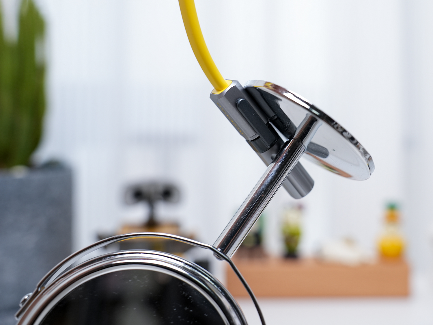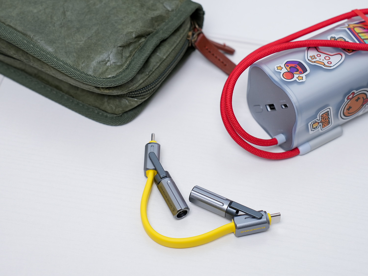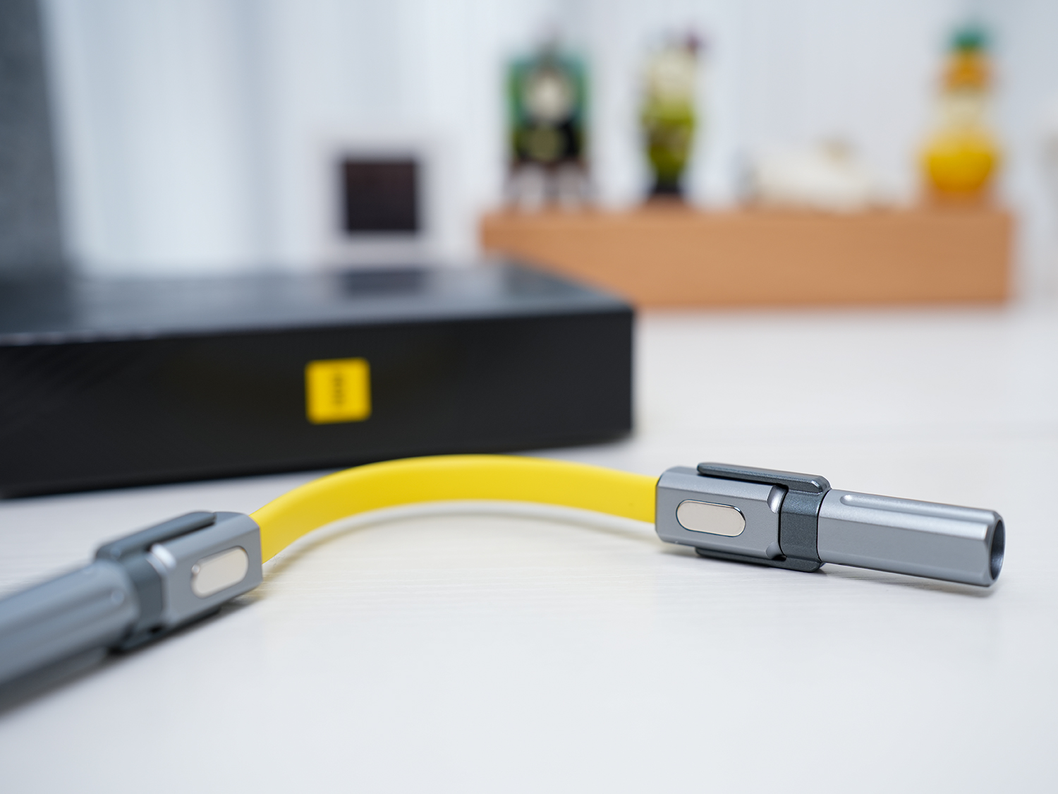 因为内置强磁铁,所以想要用到磁铁功能时这款数据线也能轻松胜任,比如前阵子买了个户外铝合金烧水壶,想找磁铁看下是不是如卖家介绍的全铝合金,在家里找了下没找到磁铁,正好数据线可以用,没想到盖子是铁质喷了和壶身一样的涂层,果断退货了。