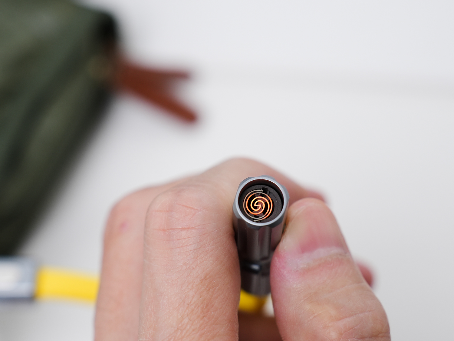 ▲前面讲了数据线的基本充电/数据传输功能,接下来就是随身电子火种,也就是常说的电子点烟器,操作也很简单,将数据线另一头的USB-C接头插入手机/移动电源接口供电,长按功能键3秒,点烟器顶端便会产生高温电热丝,实现点火功能。
