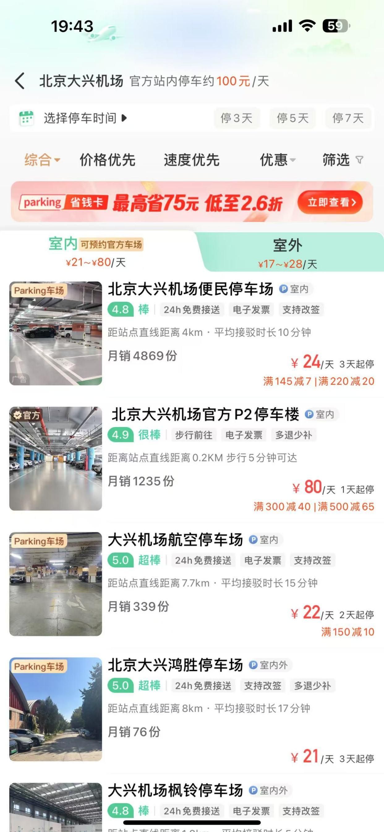 相较于官方停车场每日100元的高价,这个选择给旅行预算带来了不小的缓冲。现在,旅客们可以通过【小强停车】查看机场周边的停车场,且输入邀请码88,还可领取38元停车券,轻松在线预订你的停车位,线上价格每天仅需80元。更令人惊喜的是,附近还有性价比超高的停车场,每天费用低至17元。与官方价格相比,节省率高达82%,这无疑为旅客们的出行增添了更多便利和快乐。