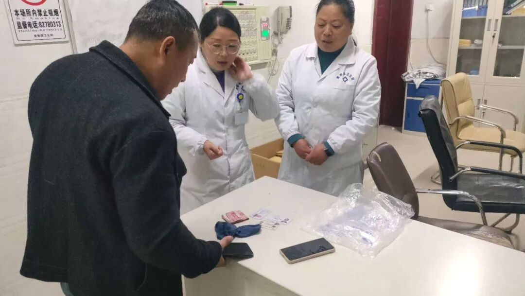 在陈兰玲医生的协助下,两人迅速联系上黄营敬老院的工作人员,详细说明情况后,不一会儿敬老院工作人员赶来卫生院把钱拿回去。