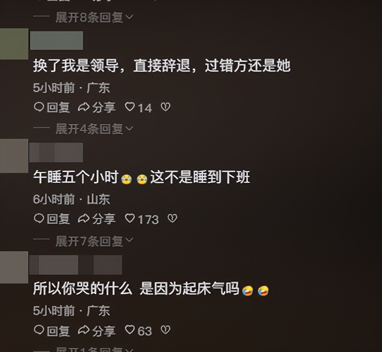 网友的态度绝非“冷漠”,而是看透了争议本质:女生的行为已突破职场底线,5小时午睡不是“合理休息”,而是实打实的旷工。