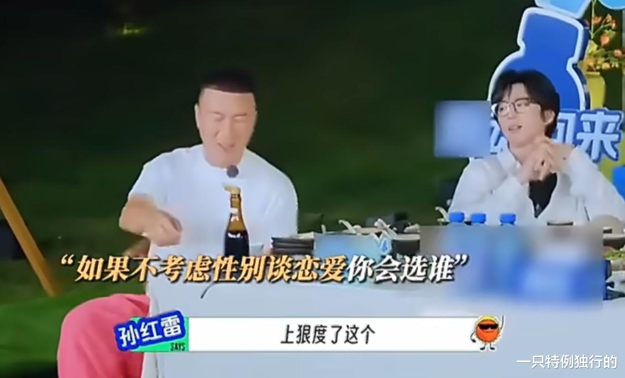游戏环节开始时,主持人向孙红雷抛出问题:“如果不考虑性别,第一次谈恋爱,你会带谁回家让家里人开心?”随后便开始了一连串的二选一挑战。当在“刘宇宁和李乃文”之间选择时,孙红雷毫不犹豫地答道:“刘宇宁”。众人以为这只是偶然,没想到后续的每个选项,孙红雷都一如既往地选择刘宇宁。“刘宇宁和星旭怎么选?”“刘宇宁”,“刘宇宁和龚俊怎么选?”“宇宁”,“宇宁和陈赫?”“宇宁”。