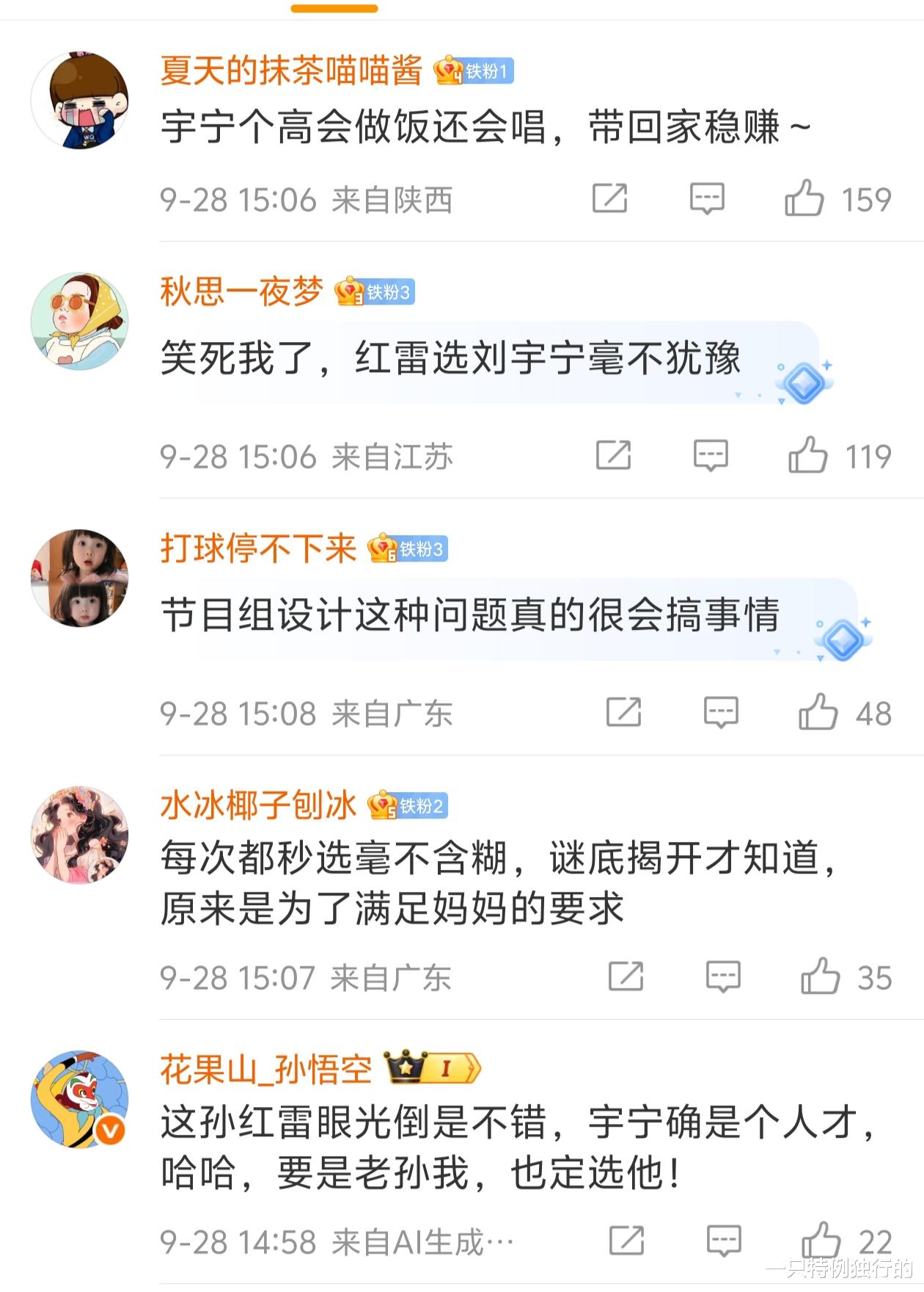许多观众看完节目后感叹道:“孙红雷的幽默感从来不会让人失望”、“这个理由太真实了,父母确实会在意身高”、“刘宇宁真的是宝藏男孩,能唱会做还个子高”。同时也有不少人调侃道:“看来身高真的是硬实力”、“孙妈妈的标准很简单明了”。这段互动不仅让人捧腹,也展现了艺人之间自然有趣的相处模式,让观众在欢笑中感受到了娱乐节目的轻松与快乐。