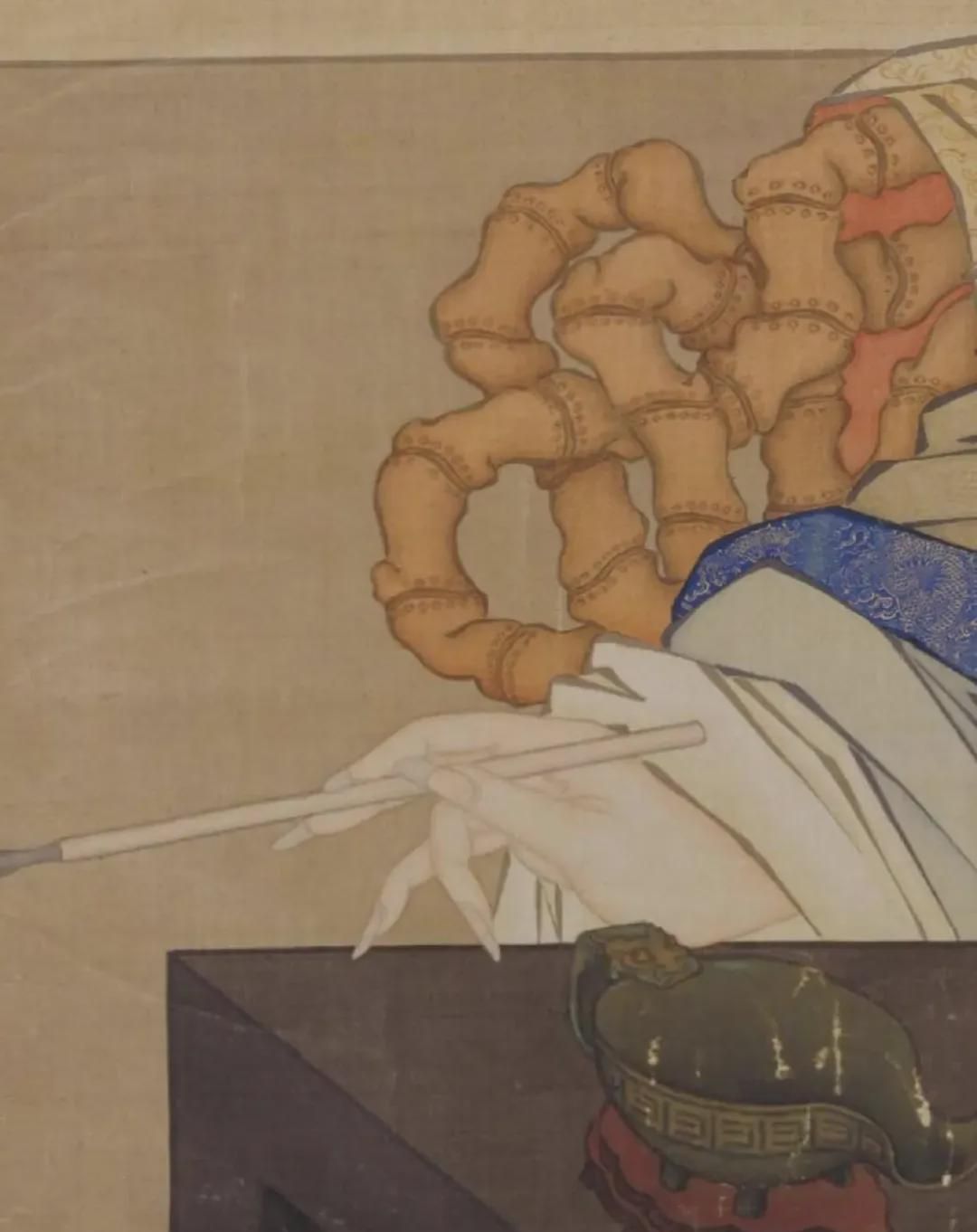 乾隆也爱留长甲,作为历史上在位最长的皇帝肯定也很奢靡,下图古画是一位洋人所画,无论是神态还是服饰的褶皱都描画了出来,一身文人装扮颇有文人的风骨,最抢眼的还是那双手,纤纤玉指说的就是这样吧,古人的长指甲和“孝”扯不上关系的,唐朝名医孙思邈中的《千金方》中就提到过:”寅日剪指甲,午日剪足甲,烧白发并吉“,说明古人没有那么不讲究,纯粹就是有钱的人生活太闲了,给自己找点小爱好。