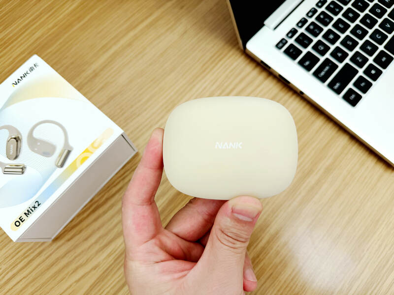 耳机充电仓的切角设计很到位,整体外观很圆润,63g的重量,加上表面经过磨砂处理,触感好,还更防滑,整体持握感是非常舒适的。充电仓正面除了NANK的logo,下方即是指示灯,能直观展示电量状态,背面是Type-C 接口,适配性更强。