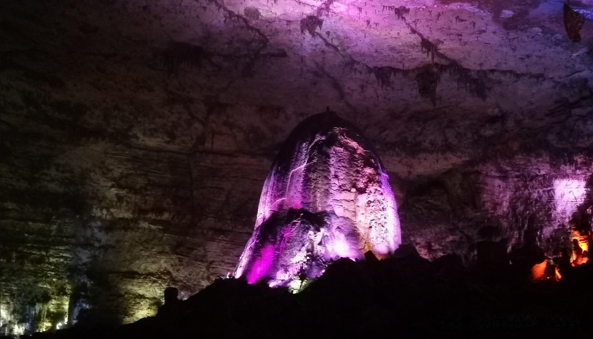 风洞台阶下去后,往右边走大约200米就是鲢鱼洞了,要注意的是风洞是免费,鲢鱼洞是要收门票,40元门票,乘坐景区内的船进入洞内参观,洞内一年四季恒温,即便是夏天30多度的天气下,洞内温度也仅16度左右,很凉爽。并且洞里已经铺设了灯光,洞内各种钟乳石、池子等,在灯光照射下,十分神奇又美丽。而且鲢鱼洞内虽然看不到鲢鱼,但是可以看到不少娃娃鱼。