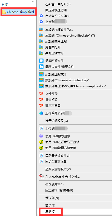 18、对着【Chinese-simplified】文件,鼠标右键,选择【复制】。