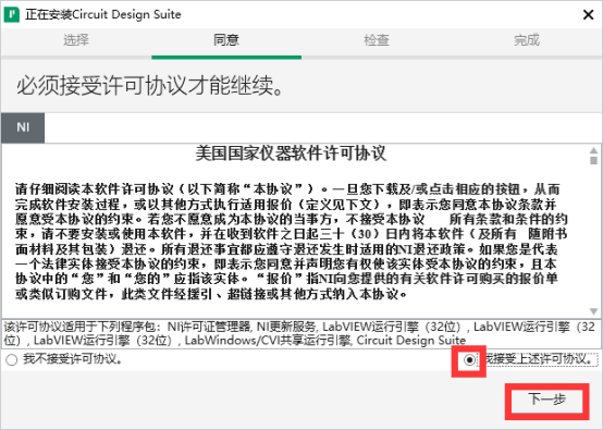 4、勾选【我接受】,然后点击【下一步】。