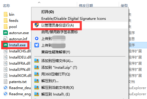 3、找到【Install】程序文件,鼠标右键,选择【以管理员身份运行】。
