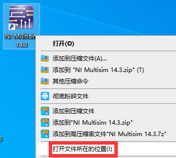 20、对着【NI Multisim 14.3】软件,鼠标右键,选择【打开文件所在的位置】。