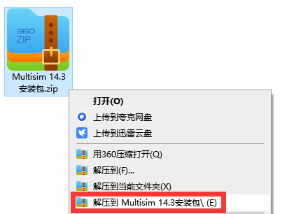 安装步骤:1、得到压缩包之后,鼠标右键解压,选择【解压到 Multisim 14.3安装包】。
