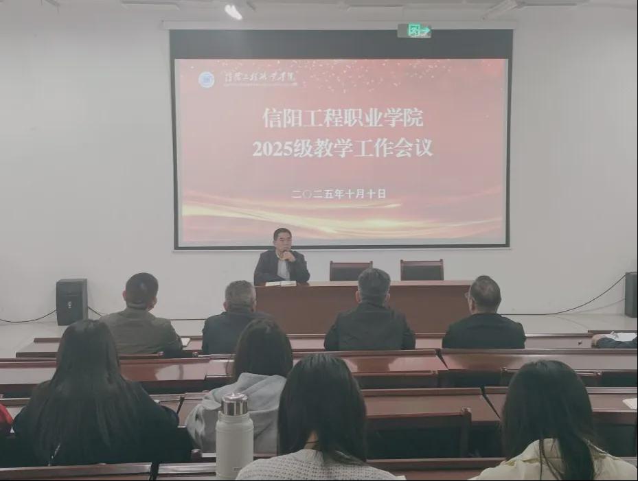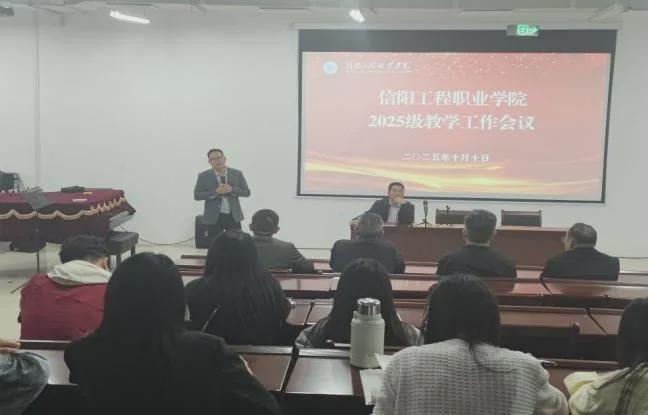 为切实保障新学期教学工作有序推进,全面提升教学质量,助力2025 级大一新生平稳度过学业适应期,10月10 日下午,信阳工程职业学院在鲁班楼S2102 教室召开2025级教学工作会议。常务副校长杨金国、各二级学院院长、教学质量监控中心主任、2025级全体任课教师及教务处工作人员参会,共同为新生教学工作谋篇布局。
